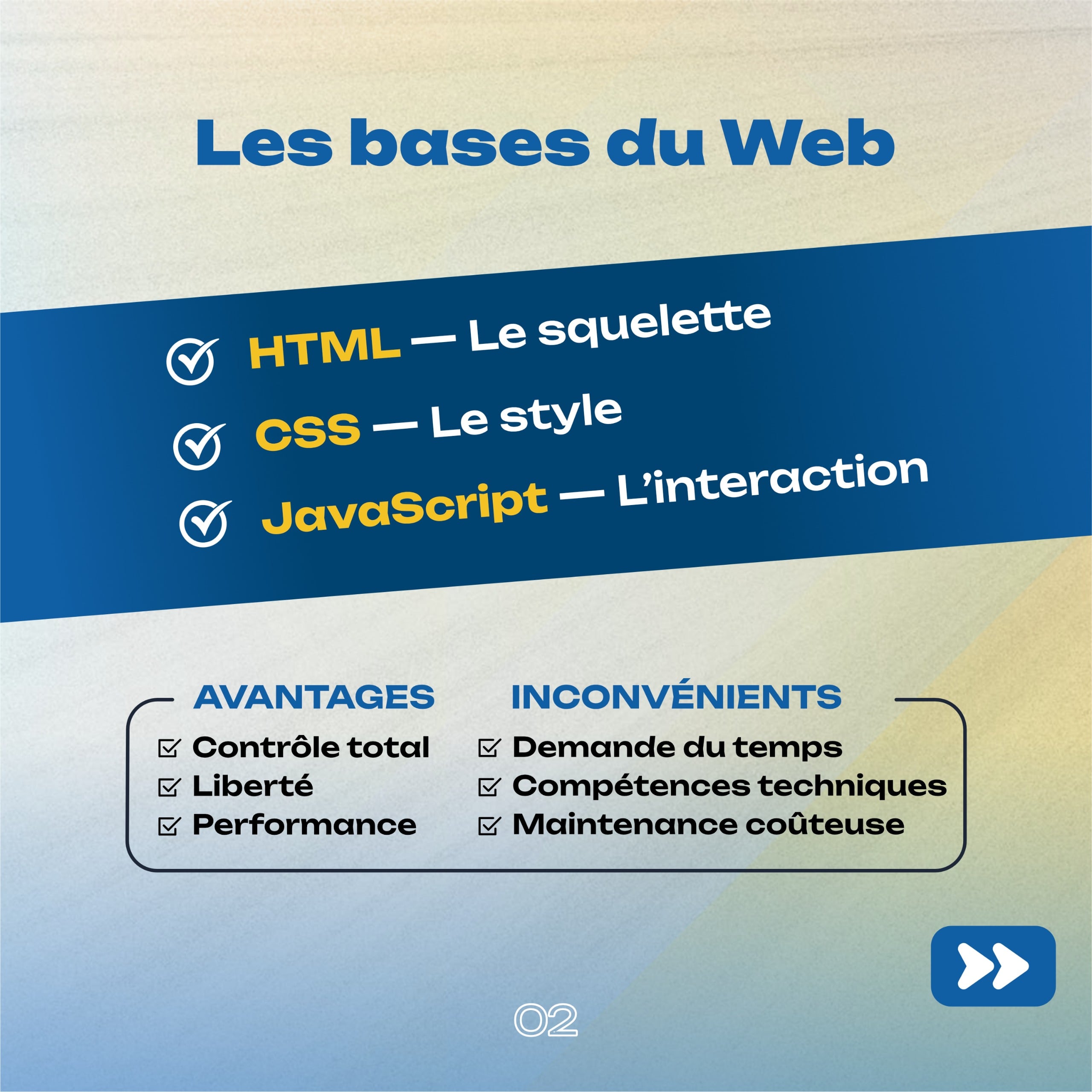 - JavaScript est l’animateur. Il ajoute du dynamisme : menus déroulants, boutons interactifs, effets visuels.